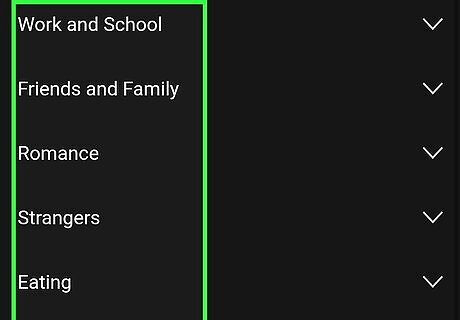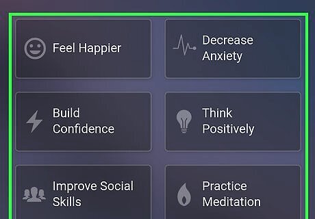 Tap a category. There are 10 categories in total. Each has their own goals to choose from. Tap a category to display a drop-down menu of related goals for each category.