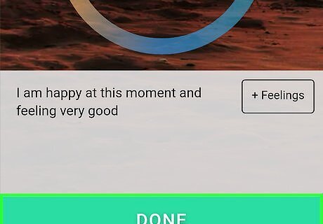 Tap Add Feelings and add any feelings you're experiencing. Tap the bar below the wheel to add feelings. There is a long list of feelings you can select. It includes basics like sad, happy, angry, afraid, etc. It also includes non-standard feelings like lethargic, homesick, apathetic, and more. Use the search bar at the top of the screen to search for a specific feeling. Select as many feelings as you feel is appropriate to how you are feeling. Tap Done in the top-right when you're finished adding feelings.