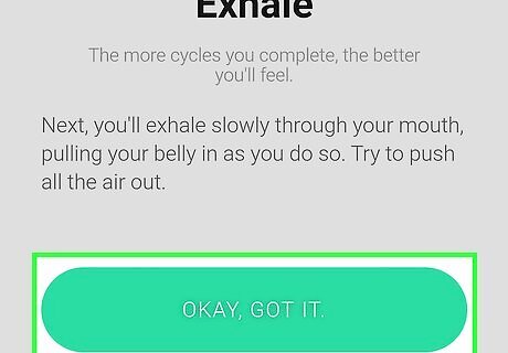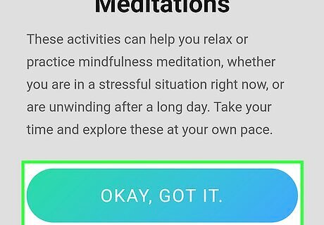 Read the instructions and tap Okay, Got it. Different meditation exercises have different instructions. For example, breathing meditations may have instructions on how to breathe. If there is more than one instruction card, swipe left to move to the next instruction card. Tap Okay, Got it when you reach the end of the instructions.