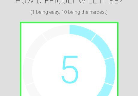 Rate the difficulty of the goal. Use the wheel to rate the difficulty of the challenge on a scale of 1 - 10. Drag the small wheel to one of the 10 sections on the larger wheel to rate the activity.