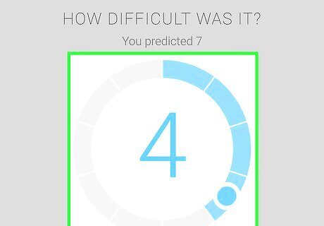 Rate the difficulty of the challenge. Use the wheel to rate the difficulty of the challenge on a scale of 1 - 10. Drag the small wheel to one of the 10 sections on the larger wheel to rate the activity.