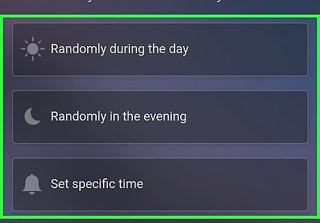 Select a time to focus on yourself each day and tap Continue. There are three options for when is a good time to focus on yourself. For a generic time, select Randomly during the day, or Randomly in the evening and tap Continue. To schedule a time, tap Set specific time. Use the clock to select a specific time and tap Ok.