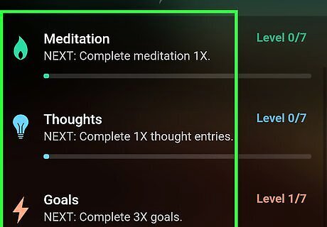 Tap Skills. It's the second tab at the top of the screen. This displays your current skill level with meditation, thoughts, goals, health, and community.