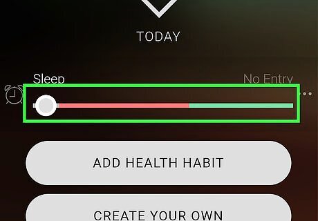 Drag the slider bars to rate your health habits. By default, Sleep and Eating are displayed automatically. Use the slider bar to rate each health habit. Anything within the green section of the slider is good and adds to your health. Anything within the red section of the slider bar is bad and takes away from your health. The heart at the top of the screen rates your overall health. If the heart is filled to the top with green, you are having a healthy day. If the heart is only partially filled with green, you're not having as healthy a day as you could be having. To remove a health habit, tap the three dots ⋯ next to the habit, and tap Remove Habit.
