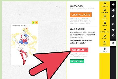 Press the Delete tab to get rid of the wall if you are the owner. The site will ask for a confirmation.