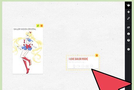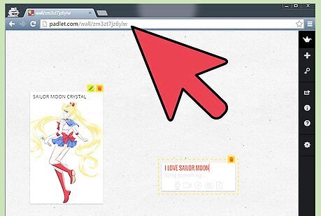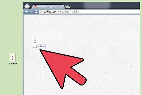 Drag a photo from your desktop or folders on your computer to place it on your wall. As long as you drag it onto the browser window, it will land on your wall. Click the center of the picture to move it around the wall, or use the arrows in the corners to make it bigger or smaller.