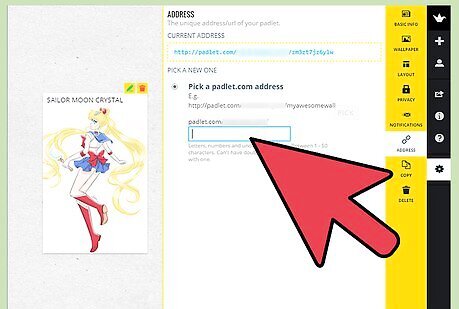 Create a custom wall URL in the Address tab. If you have an account, you will be able to choose an available URL that is easier to remember, such as “padlet.com/wall/mayberry.”