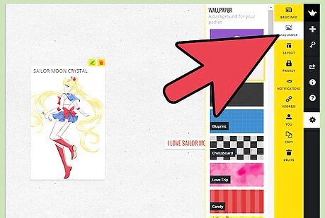 Tap or click the next tab, Wallpaper. You can choose a paper or wood texture. Opt to use your own image or a vector image that is in the list.