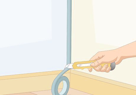 Run a piece of tape up the wall and cut off the excess for corners. When you are taping corner areas, like where two walls meet, take your piece of tape up from the baseboard by about 2 inches (5.1 cm) and then cut off the excess with a utility knife. This will give you a clean, straight line in the corner of your area. Utility knives are useful, but are also very sharp. Use caution if you use one, and be careful to not scratch your walls when you cut your tape pieces.