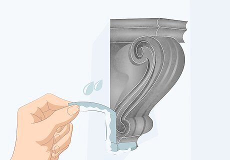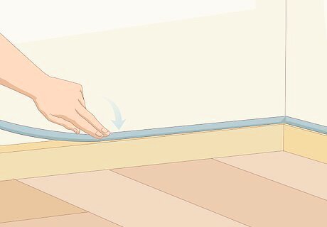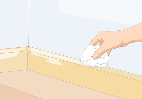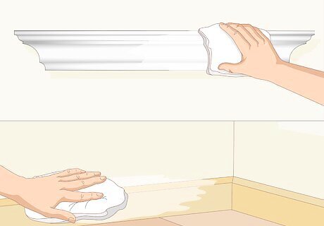 Clean moldings and baseboards before putting on your tape. You’ll want your surfaces to be clean and dry before you start applying your tape so that it sticks well and stays on. Use a damp cloth with a little bit of soap on it to remove dust and debris from your moldings and baseboards. You can use a dry cloth to wipe up any excess water, or you can wait for everything to air dry before you apply your tape. Making sure all your surfaces are clean and dry before you start painting will also help your paint last longer and go on more evenly.