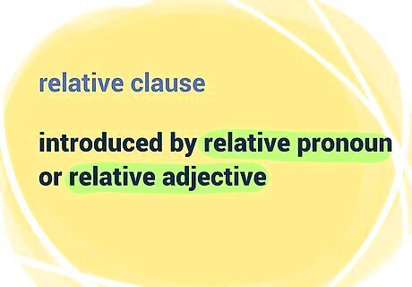 Know that relative clauses are a type of dependent clause. A relative clause is a type of dependent clause; it needs the rest of the sentence to exist. A relative clause is introduced by either: A relative pronoun (that, who, whom, whose, and which). This will be covered in Method 2 of this article. A relative adjective (when, where, or why). In a sentence, it functions as an adjective, meaning it describes a noun or a pronoun. This will be covered in Method 3 of this article.