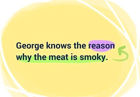 Understand that “why” acts a little different when it comes to relative adverbs. “Why” usually works a little differently from other relative adverbs. “Why” often ends up in the second half of the sentence, even though it describes the subject. For instance, you could write, “George knows the reason why the meat is smoky.” In this sentence, “why the meat is smoky” is modifying “the reason.” In fact, you will often use “why” clauses to modify “the reason,” even if it is only implied. The sentence above could read: “George knows why the meat is smoky.”
