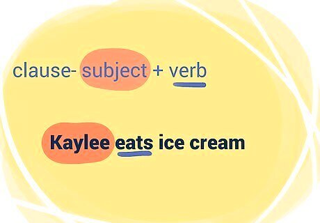 Develop a basic understanding of independent clauses to better understand relative clauses. A relative clause is a particular kind of clause. By definition, a clause must have a subject and a verb (if it doesn’t, it’s called a phrase). For instance, a simple sentence is made of an independent clause. meaning a clause that can stand by itself. The sentence “Kaylee eats ice cream” is an independent clause. It has a subject, “Kaylee,” and a verb, “eat.” As you can see, an independent clause can stand by itself. A subject is just the noun (person, place, thing, or idea) or pronoun (replaces a noun) that is doing the action in the sentence. The verb is the action of the sentence.