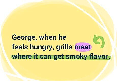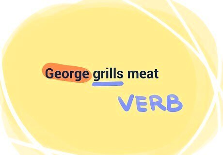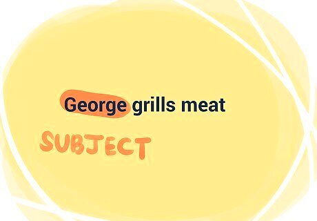 Choose a verb for your simple sentence. Now choose a verb and a direct object (which could be a noun or pronoun) in order to complete the sentence. To find the verb, ask yourself what George is doing. Let’s say he is grilling: “George grills.” To find the direct object, ask yourself what George is grilling. Let's say he is grilling meat “George grills meat.”