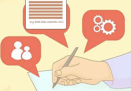 Develop the objectives for your writing. Once you’ve figured out who your audience is, you need to figure out what how those users will be using the document. In general the document’s objective will fall into one of two categories: task-based or reference-based. Task-based documents are from the perspective of what the user is doing, whereas reference-based documents are from the perspective of what the product does. An example of a task-based document could be instructions on how to create a website in WordPress. In this situation you’d walk the user through all the steps from start to finish, regardless of where those steps occur within the WordPress software. An example of a reference-based document could be a user’s manual for a Blu-Ray player. In this situation you’d explain each part of the machine separately - what each button, function, menu item, etc., does.