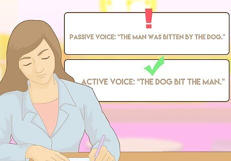 Use an active voice. Using an active voice means that the subject of a sentence (i.e. the noun) performs some sort of action, as opposed to the action being performed on the subject (i.e. passive voice). Active voice also refers to what types of verbs are used. Active voice tends to be easier to understand when read, and sounds more confident. Another way to think about which verbs you use is to consider if they need to be preceded by “to be,” “is,” “was,” “were,” “has been,” and “have been.” If those extra words are required, the verb is probably written in a passive voice and should be rewritten. Passive voice also tends to be written as something that happened in the past, whereas you should write as if everything is happening in the present, right now. An example of a statement with a passive voice: “The man was bitten by the dog." An example of a statement with an active voice: “The dog bit the man." If you’re unsure whether what you’ve written is straightforward enough, read it out loud to yourself.