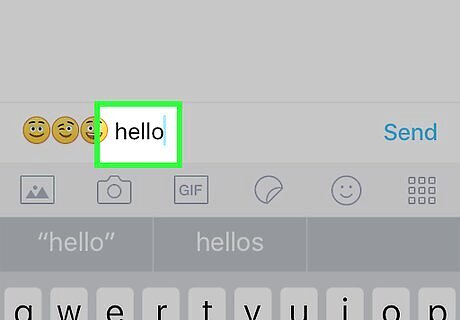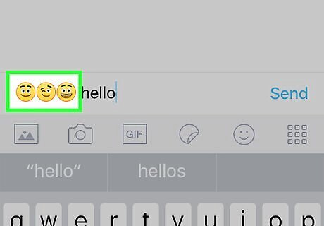 Type the rest of your message, then tap the blue chat bubble to send. If you have something else you want to say, type it before sending the message. Once the message is sent, the smiley (and any accompanying text you included) will appear in the chat.