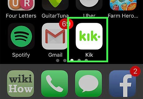 Open the Kik app on your mobile device. A list of your chats will appear as soon as you launch Kik. Tap the name of the person you’re chatting with to open that chat. If this is your first time using Kik, install the app from the App Store (iPhone) or Play Store (Android) and tap “Register” to sign up.