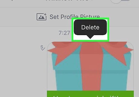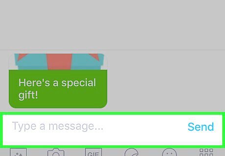 Type a note to accompany your gift. You’ll now see a chat window that gives you the opportunity to send an additional message about it. Type your message, if desired, and then tap the blue Chat icon to send the smiley.