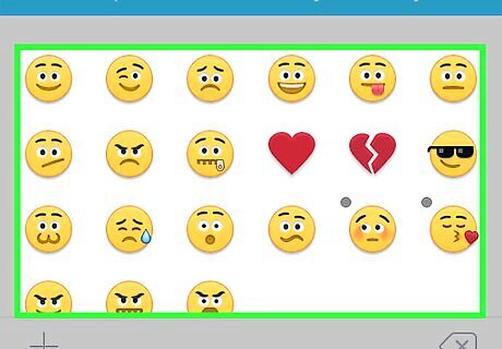 Tap the :) icon in your chat. When you tap the :), the smiley tray will appear, showing all available options.