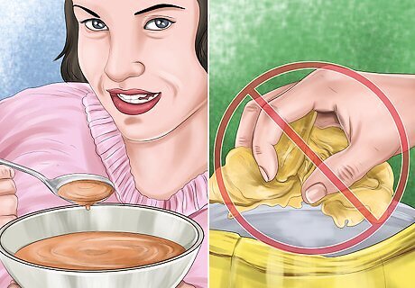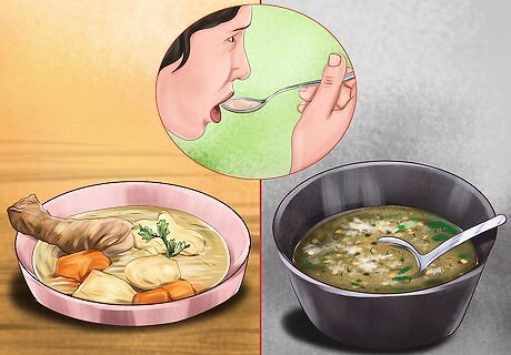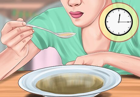 Take your time eating the soup. Soups generally take longer to eat than other foods. Take your time eating the soup instead of trying to slurp it down quickly. Eating your food more slowly can help you avoid overeating by giving your body time to tell your brain you are full. You can try eating your soup 15 minutes before you eat your meal. Sip slowly and enjoy the tastes instead of rushing to get to the main course.