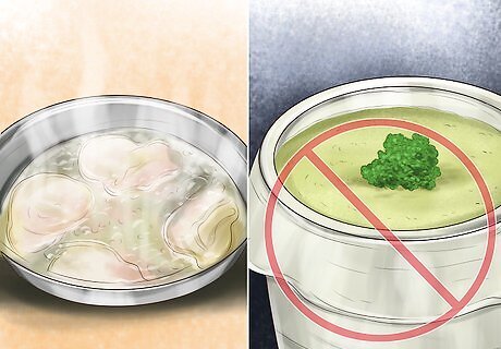 Create healthy soups. When adding soups to your meals to help control your eating, you should make sure the soups you eat are healthy. This means you should avoid soups that contain a lot of cheese or are cream-based, like cream of broccoli, cream of chicken, or chowders. Instead, make soups that are water or broth-based. Choose vegetable, beef, or chicken broth or stock to use as a base. Try to choose broths that have reduced or low sodium and no artificial ingredients. Consider making your broth yourself by boiling chicken bones. Look for healthy soups that are broth and water-based and filled with vegetables.