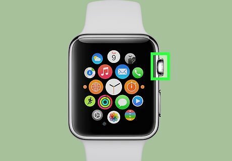 Press the Power button. It's below the Digital Crown dial on the side of your Apple Watch. Doing so opens a list of currently open apps.