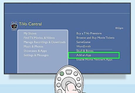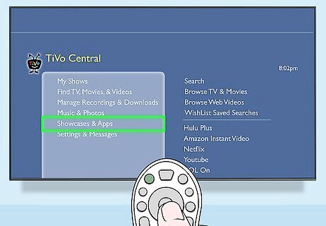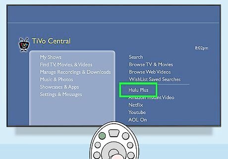 Download the Hulu Plus app. Open your TiVo and, using its remote, select “Showcases and Apps” from TiVo Central (its main menu).