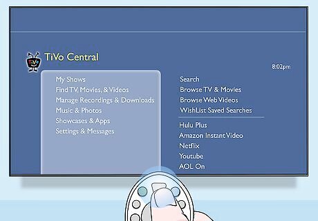 Go to TiVo Central. Press the “Home” button on your TiVo remote to navigate back to TiVo Central.