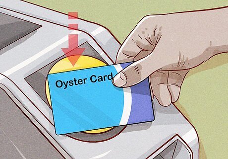 Enter the Tube station and scan your card or ticket to get past the barrier. There are 272 Tube stations, so find the one nearest you and make your way inside. Follow the flow of traffic until you reach a yellow card reader. Touch your Oyster Card or mobile device to the reader to scan in or insert your ticket or Travelcard into the slot. If there isn't a barrier, touch your card to the yellow reader that will be near the entrance or on the platform; if you have a paper ticket or Travelcard, you don't need to do anything, as long as your ticket is valid.