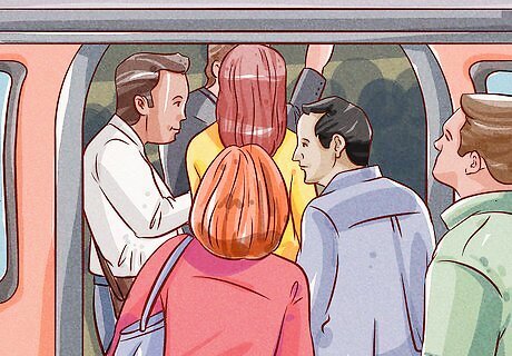 Wait to board until other passengers have disembarked. Don't try to squeeze through the doors as soon as they open. Be patient and allow other people to get off the Tube before getting on. Then, make your way through the train car to provide spaces for other passengers to embark.