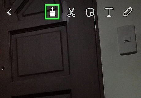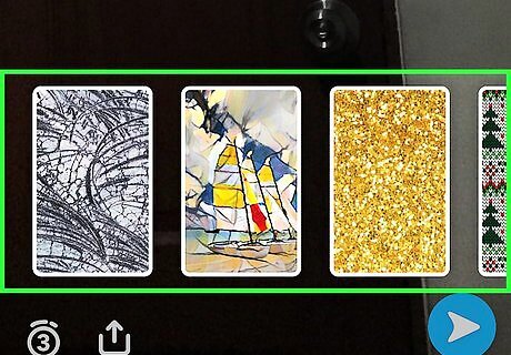 Swipe through and select your desired paintbrush filter. These filters will make your snap look like a painting. Tap the white arrow at the bottom of the page in the blue circle. Tap a friend's name to send them the snap or tap My Story to add it to your story for all your friends to see.