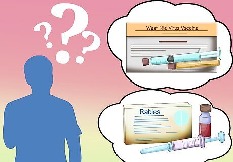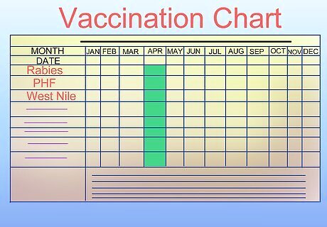 Decide what vaccinations are needed. There are core vaccines, which all horses should get, and at-risk vaccines, which are usually used only if your horse is in a region where the disease is active. Even if a veterinarian suggests a variety of vaccinations, it is up to you to make the final decision. Balance your veterinarian's expertise with your desires and your financial ability to pay for vaccinations. Remember that the Rabies vaccine is usually required by law in most states. Core vaccines include equine encephalitides, rabies, tetanus, and West Nile virus. Optional vaccines include equine influenza virus (EIV), strangles, Potomac horse fever and botulism and equine herpesvirus 1&4 (EHV1&2).