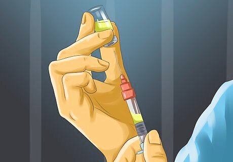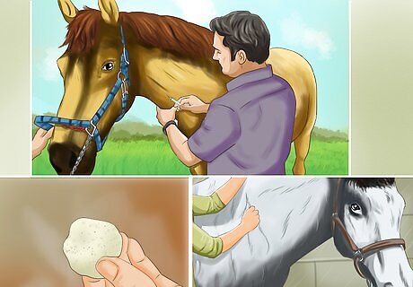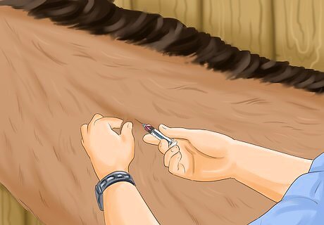 Prepare the injection site. You can inject the vaccine into the horse's neck or into the muscles below the tail. The neck is most commonly used and is best if only giving a few shots. Once you have decided where to give the shot, you will need to clean the injection area. Cleaning the injection site can be done simply by removing all dirt and debris and then rubbing the area with a cotton ball covered in rubbing alcohol.
