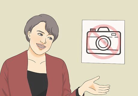 Ask about the gallery’s photography policy before taking photos. Some galleries do not allow photography, and nearly every gallery will ask you to turn off the camera’s flash to preserve the art. You may find this information on signs throughout the gallery, or you can ask a gallery employee directly. If you are allowed to take photos of the art, be sure to take photos of the labels too. This way you will know the name of the piece and the name of the artist when viewing the photograph later on.
