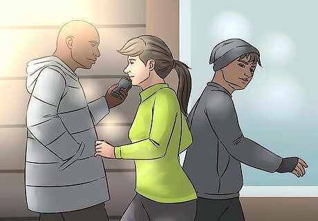 Look for high-traffic areas. Footpaths and established trails that attract a lot of walkers, bikers, and runners are the best option for walking at night. This way, you’ll always have someone nearby. High-traffic areas, in this context, refers to high numbers of pedestrians. Areas with abundant automobile traffic, however, should be avoided. If you don’t have any high-traffic walking areas, buddy up with a friend or bring your dog along for the walk. Not only is there safety in numbers, but sharing a walk with a friend is great fun. Alternately, you could walk through neighborhoods where you know people.