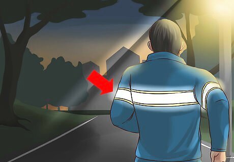Wear reflective clothing. Reflective clothing can help you to stay safe on your walks. If you’re wearing reflective clothing, you will be more easily seen by drivers and other pedestrians. This will keep both you and others safe. Your reflective clothing should cover your back, front, shoes, and sides. You can easily purchase reflective bands, vests, and hats at most sporting goods stores.