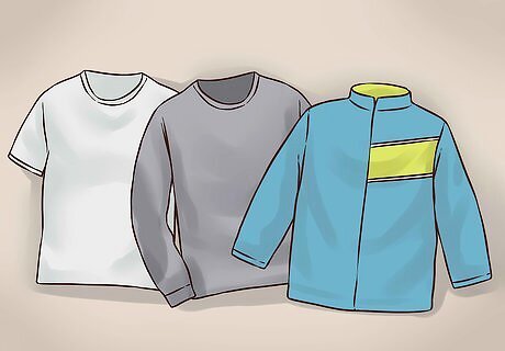 Wear layers if it is chilly. Layering means wearing multiple thin clothing items that you can easily remove if necessary. You might overestimate how cold it is outside, or find that once you get up to speed on your walk, you’re warmer than you thought you would be. If you’re wearing layers, you can (for instance) remove your jacket. If you’re still warm, you could remove your sweater. A good way to layer is to wear a t-shirt, a long-sleeved shirt, a thin sweater, and a light jacket. If you have a backpack with you when you walk for exercise at night, stuff your excess layers in the backpack. You could also pack a sweater or hoodie in the backpack in case you anticipate getting cold.