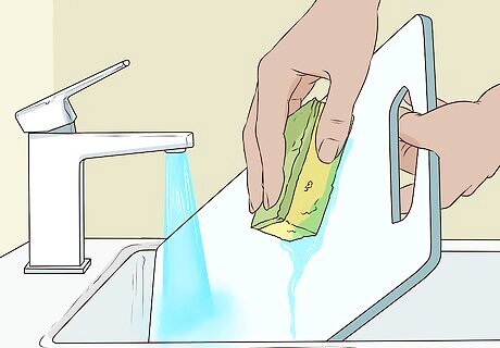 Wash your cutting board after every use and sanitize it regularly. Cutting boards contain bacteria from the food placed on them. After using a cutting board, place it under running water and wash it with dish soap. Then rinse the cutting board and dry it completely on both sides with a paper towel or dish rag, or set it on its side to air dry. Plastic cutting boards accumulate knife grooves over time, and these grooves can trap bacteria. It is impossible to clean this bacteria out by hand, so use the dishwasher to clean plastic cutting boards after every use. Wooden cutting boards cannot be put in the dishwasher, but they are more sanitary because bacteria is absorbed into the wood and eventually dies. In addition to washing with soap and water after every use, sanitize your cutting board at least once a month.
