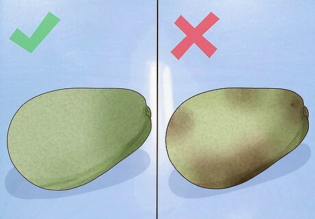 Select avocados without brown spots or bruises. Decide what type of avocados you need and how ripe you want them to be, then check each fruit for brown spots or bruises. Brown spots and bruises are conducive to bacterial growth, so picking avocados with unblemished skins will help you avoid overly contaminated fruits. Make sure to avoid bruising your avocados after you buy them so that you are not introducing bacteria into the fruit. Do not place heavy objects on or around avocados in the shopping bag, and store them somewhere where they will not be crushed.
