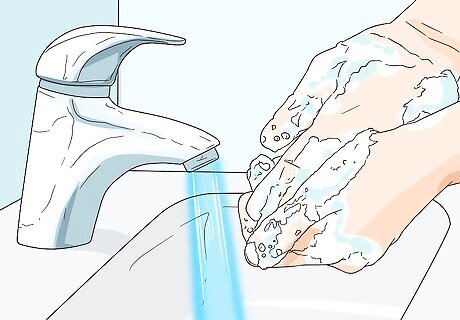 Wash your hands with water and hand soap. This will help prevent bacteria on your hands from transferring to the fruit. Turn on running water, lather your hands with soap, and scrub for 20 seconds. Then rinse your hands and dry them thoroughly.