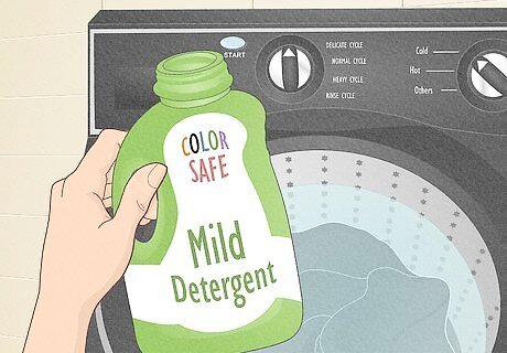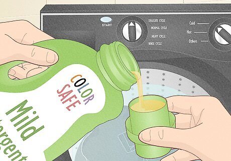 Too much detergent can prevent clothing from getting fully cleaned. Before adding detergent to a load of dark clothing, read the package to see how much detergent to add. Every detergent is slightly different, so there’s no set amount to use (although less is usually more). When possible, use a small amount of concentrated detergent for dark clothing. If your clothing is heavily soiled, it’s okay to add a little extra detergent to the wash. This can help you get the job done the first time Remember, washing dark clothing always causes at least some fading, so an efficient wash is best.