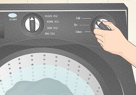 Cold water prevents dark clothes from fading. Dark clothing is particularly susceptible to losing color during a wash cycle, which is why cold water is preferable; it helps the fibers in dark fabrics stay intact. Set your washing machine to the coldest setting possible. If your clothing is especially dirty, use the soil setting— but set it at the lightest possible level. Hot water can make clothing fade faster (and using cold water for washing clothes actually saves money—and energy—as well).