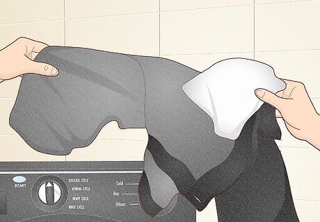 Check for specific washing and drying instructions on each item. Reading labels is always a good precaution, regardless of what you’re washing. Ensure your clothing is machine washable (since not all clothing is), and you know the best way to wash each article. Expensive clothing (like a black business suit, for example) may be dry-clean only, meaning you’ll have to take it to the dry cleaners. Other clothing, like wool clothing, may be hand-wash only. Wash those items in a sink or tub with a small amount of detergent; then, rinse them and then hang them or lay them flat to dry. Care tags are there for a reason! Following their instructions can keep your dark and black clothing looking new for longer.
