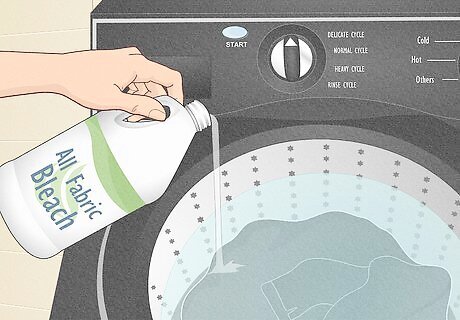 Bleach can easily stain dark clothing. On some occasions, you may need bleach for stubborn stains that don’t respond to other treatments. In those cases, be sure to choose a quality bleach labeled “color-safe bleach,” indicating that it’s safe for non-white fabrics, as well as chlorine-free since chlorine bleaches are more powerful (and used to whiten clothes). Your washing machine may have a bleach dispenser. If so, follow its instructions. If you don’t have a bleach dispenser, dilute the bleach on your own (and read the package label for instructions). Only use bleach after running out of other options. Dark clothing should be bleached infrequently, if at all.