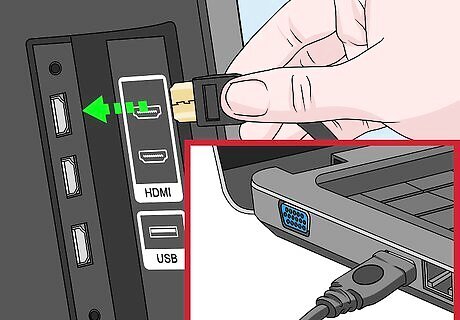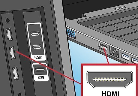 Make sure that both your computer and your TV support HDMI. Look for an HDMI port—which resembles a flat, wide, hexagonal slot—on the side or back of your computer, as well as on the back or side of the TV.