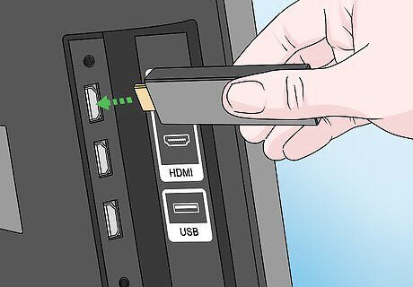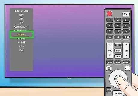 Switch the TV's input to HDMI. Next to the HDMI port on your TV, there should be a number; change your TV's input to that number by pressing the "Input" or "Video" button on your TV or the remote and then selecting the HDMI number. Some TVs will require you to press the "Input" or "Video" button until you arrive at the "HDMI" option.