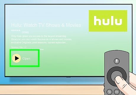 Open Hulu. When Hulu finishes downloading, select the Open button that appears below the app icon or highlight the app icon on the Fire TV home screen to do so.