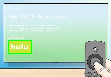 Search for the Hulu app. Type hulu into the search box to do so. If you're using voice search, just say "Hulu" (pronounced "hoo-loo") into the remote.