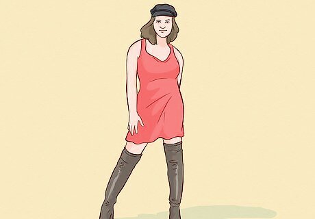 Wear it with a dress to create a striking contrast. A Greek fisherman’s cap can have a masculine look, so pairing it with a feminine piece like a dress creates a striking contrast. Pair it with a sundress and sandals in the summer or a shirtdress, tights, and knee-high boots in cooler weather.